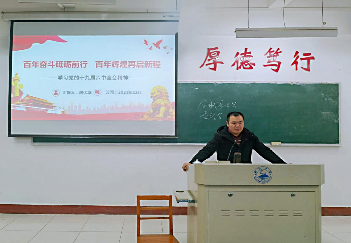为深入学习贯彻党的十九届六中全会,深入领会全会的精神内涵,12月14日下午,william威廉英国于义丰楼教室组织召开了十九届六中全会精神宣讲会。本次宣讲会由马克思主义学院老师谢伏华主讲,william威廉英国A2121班和A2122班全体同学参加。