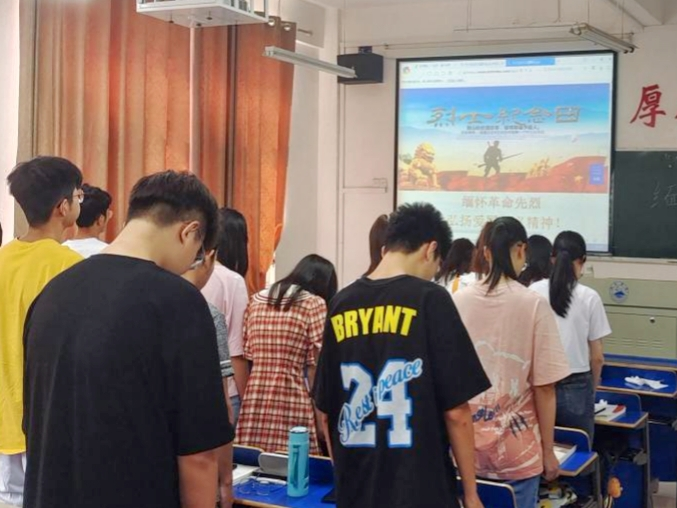 早上上课前,全院学生在教室集体向为中国人民解放事业和共和国建设事业英勇献身的烈士默哀,致敬英烈!
