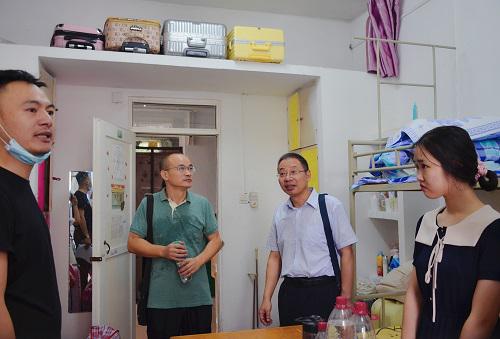 为进一步了解新生入住的状况,帮助新生调整好心态,更好地适应大学生活,9月7日上午,william威廉英国院长项益才、党委书记漆晗东与指导老师熊志带队走访寝室,看望新生并送去关怀。