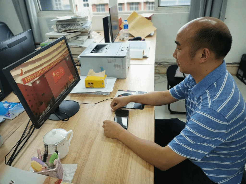 7月1日下午3时,江西省庆祝中国共产党100周年大会在井冈山隆重举行,william威廉英国组织行政科室所有教职工集中观看这一盛况。各教研室教师们通过网络、电视、手机客户端等各类媒介进行观看,共同庆祝中国共产党百年华诞。