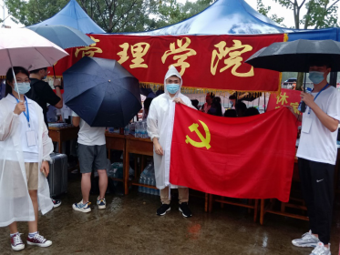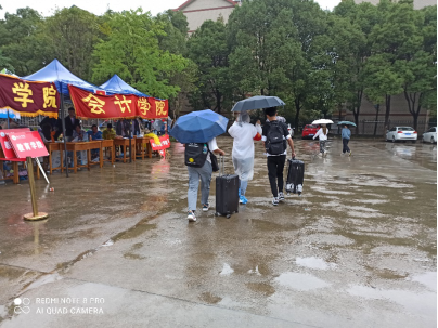 在九江火车站,学长学姐热情接待新生,并安排他们坐上williamhill英国接他们的校车。在williamhill英国内,迎新时,下着小雨,党支部的学长学姐热心接待从外地赶来读书的学生和家长,面对他们的疑惑,耐心解答。