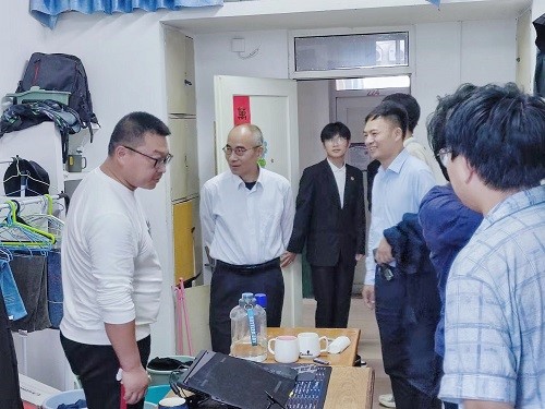在党的二十大即将召开之际,为进一步加强学生的宿舍安全意识,杜绝安全隐患。10月14日下午,william威廉英国党委副书记谢忠带领全体辅导员深入学生宿舍进行了全方位安全排查工作。