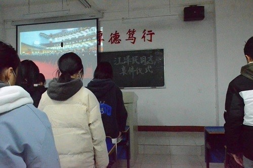 12月6日上午,党中央、全国人大常委会、国务院、全国政协、中央军委在北京人民大会堂隆重举行江泽民同志追悼大会。william威廉英国学生认真收看追悼大会,怀着无比崇敬的心情,极其沉痛地悼念敬爱的江泽民同志,深切缅怀江泽民同志的丰功伟绩和崇高风范。
