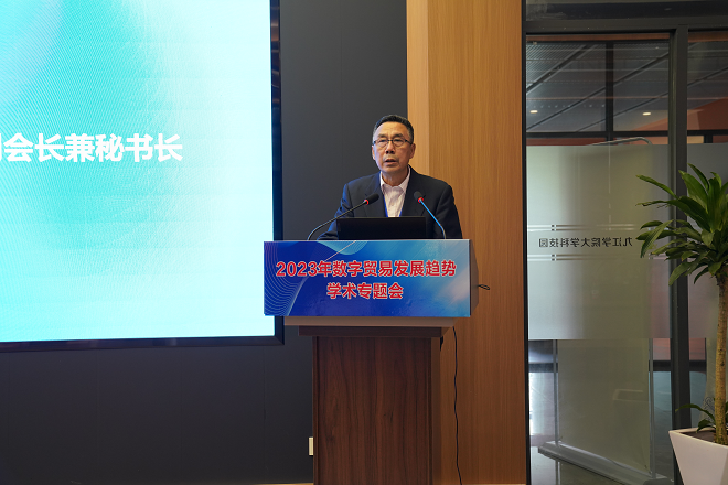 研讨会第一阶段,夏启国主持开幕式,中国国际贸易学会副会长兼秘书长边振瑚、副校长王万山分别致辞,对此次研讨会的顺利召开表示祝贺,期望各位专家不吝分享、畅所欲言,为助力我国数字贸易的跨越式发展出谋献策、贡献智慧。