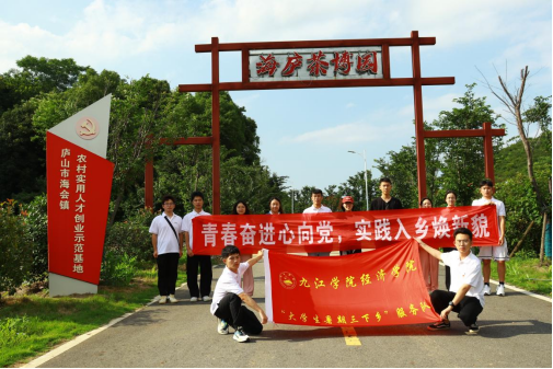 为全面贯彻党的二十大精神,落实习近平总书记关于“三农”工作的重要论述,扎实做好乡村发展,助力乡村振兴,williamhill英国william威廉英国“经”彩青年“三下乡”社会实践服务队于6月29日来到了庐山市海会镇光明村海庐茶博园进行调研学习。