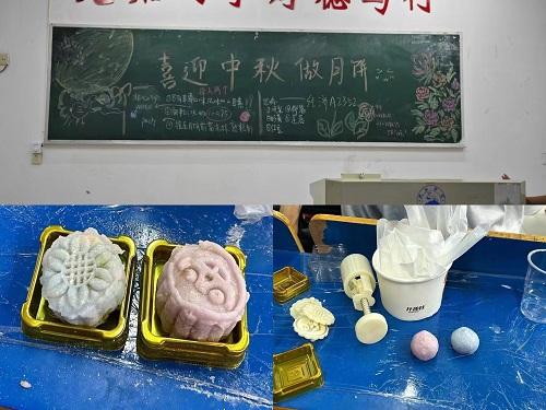 活动分为两个环节,首先是“巧手迎中秋”,同学们围坐一起讨论月饼的制作,互相交流家乡习俗,通过动手制作,体验传统文化的乐趣,不仅拉近了人与传统的距离,而且增强了对中秋文化的认知和理解。其次,各班还制作了中秋板报,在亲身制作中感受节日文化底蕴。