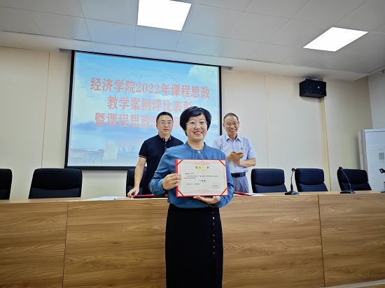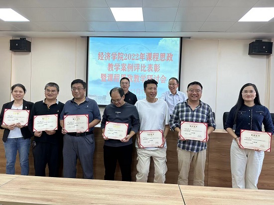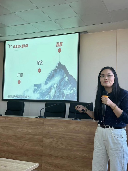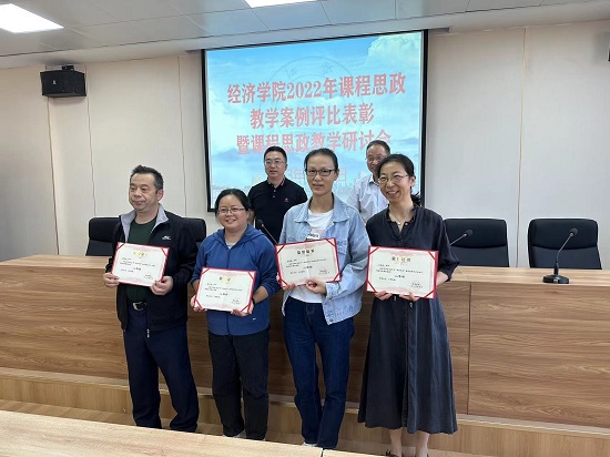 颁奖结束后,国际贸易教研室张敏、谢丽芬,金融工程教研室顾艳辉,数字经济教研室汪霞云四位老师,分别结合自己所教授课程,从课程思政教学设计思路、教学案例遴选原则、课程思政实施路径、思政元素融入方式等方面给参会老师做了分享交流。