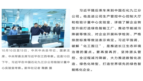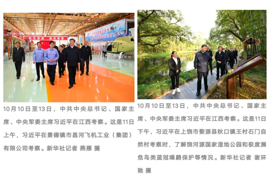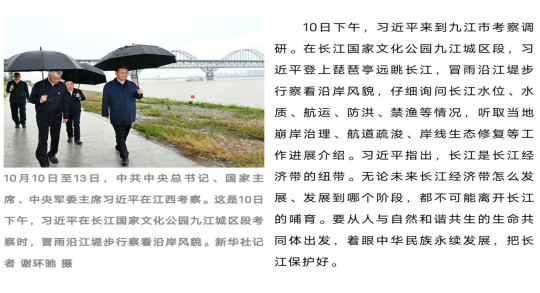 活动开始前,大家通过观看图文、新闻视频的方式重温了总书记考察江西时的场景。2023年10月10日至13日,中共中央总书记、国家主席、中央军委主席习近平在江西省委书记尹弘和省长叶建春陪同下,先后来到九江、景德镇、上饶等地,深入长江岸线、企业、历史文化街区、农村等进行调研。