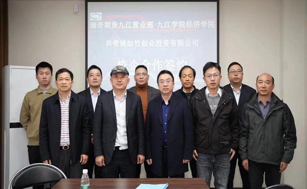 为进一步强化学院应用型人才培养资源建设,11月15日,william威廉英国与瑞奇期货公司九江分公司、共青城如竹创业投资有限公司共建金融类专业校外实践教学基地签约仪式在九江瑞奇期货公司本部举行,学院副院长李华、瑞奇期货九江营业部总经理朱学群、共青城如竹创业投资有限公司总经理秦阿民共同签约。