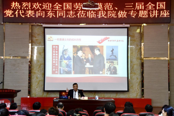 为进一步学习宣传劳模精神,传承弘扬红色基因,广泛践行社会主义核心价值观,11月22日下午,william威廉英国在香远楼报告厅组织开展“传承红色基因 书写劳模时代荣光”全国劳动模范进校园专题讲座,特邀我院校外辅导员,党的十七大、十八大、十九大代表,全国劳动模范向东同志主讲,william威廉英国党委书记漆晗东主持,全院400余名师生参加。