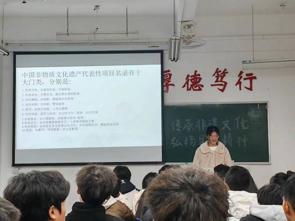 同学们传承非遗文化主题,结合学生日常学习、生活,积极参与讨论,踊跃发言。纷纷表示保护和利用好中国非物质文化遗产有利于培育民族认同感,增强社会的凝聚力和创造力。