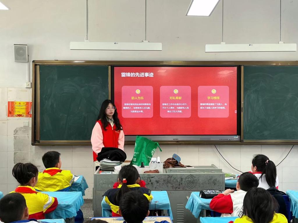 青年志愿者服务部以“学习雷锋精神,弘扬文明新风”为主题,结合雷锋的经历,借助ppt的方式介绍本次宣讲活动,从雷锋的生平、雷锋精神的内涵、学习实践雷锋精神、雷锋精神的传承和雷锋精神的意义这几个方面展开,带领学生们领悟峥嵘岁月,鼓励学生树立崇高理想信念,培养高尚的道德品质,努力学习科学文化知识,开拓眼界、增长本领,争做新时代好少年。
