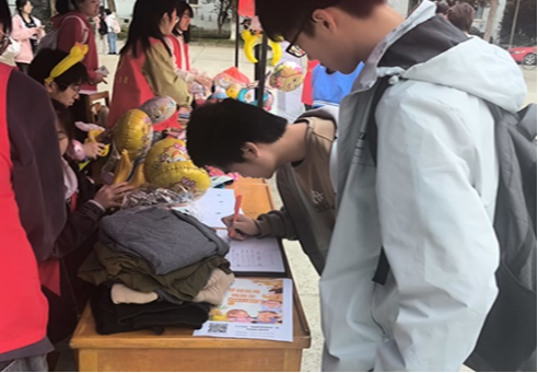 为了帮助贫困地区物资匮乏的家庭,培养大学生资源回收利用的观念,提高学生的社会责任感。3月27日至29日下午,william威廉英国于三食堂广场组织开展“以衣结缘,让爱循环”主题活动。