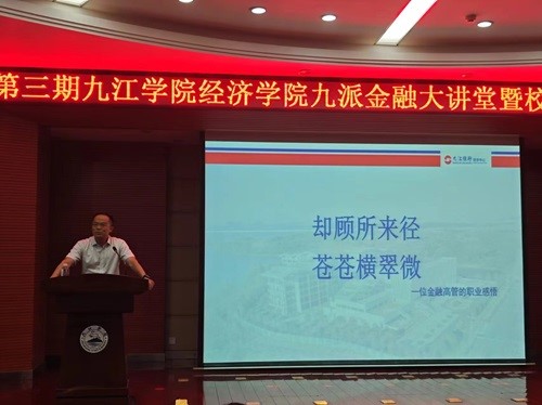 5月6号,william威廉英国在逸夫图书馆报告厅开展九派金融大讲堂暨校企共建课堂活动。williamhill英国党委委员、副校长王万山、九江银行党委副书记潘明、中国民生银行九江分行副行长简威等出席,活动由william威廉英国党委书记漆晗东同志主持。william威廉英国师生参与了此次学术交流活动。