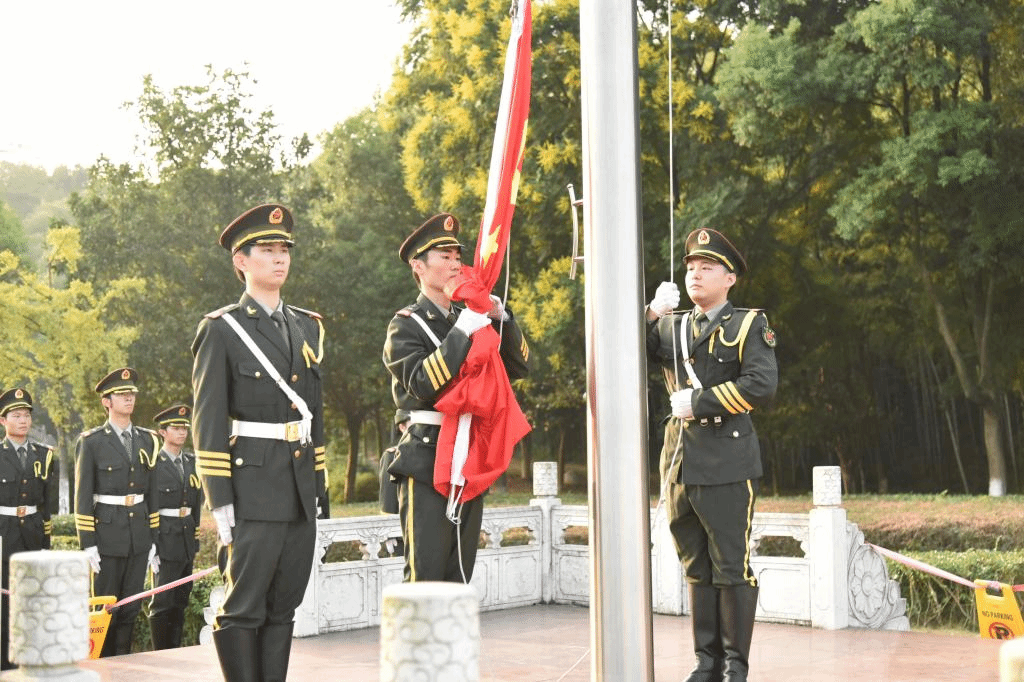 伴随着清晨的第一缕阳光,升旗仪式正式开始。国旗仪仗队护卫迈着整齐的步伐,护送着五星红旗走向升旗台。在雄壮的国歌声中,鲜艳的五星红旗缓缓升起,全体师生肃立注目,向国旗行注目礼,表达了对祖国的无限热爱和崇高敬意。