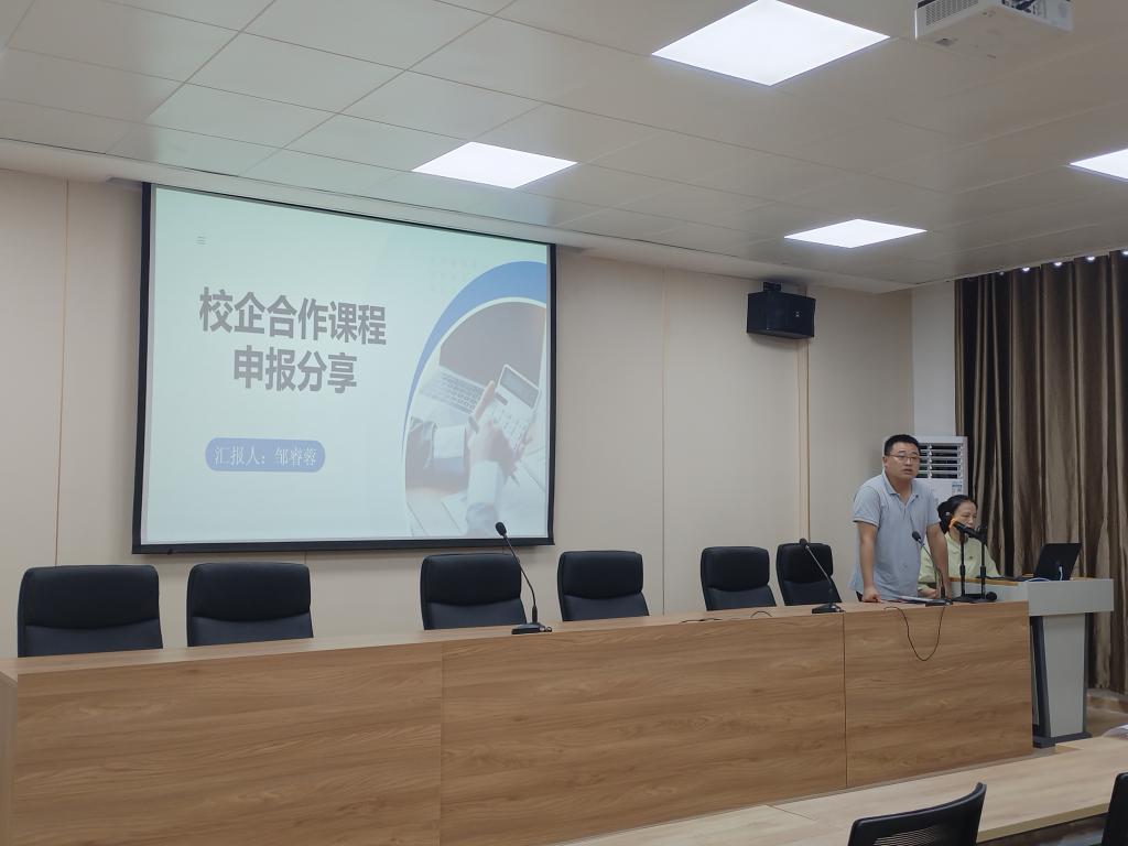为进一步深化我校地方应用型转型发展,加强校企合作协同育人建设,强化一流课程的建设和应用,全面推动我院课程高质量建设,提升我院人才培养质量,我院于9月11日下午在义丰楼602会议室举行“校企合作一流课程申报及建设经验分享会”,分享会由邹睿蓉副教授主讲,学院全体专任教师参加,副院长洪定军主持。