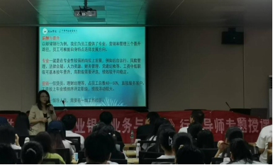 9月29日上午,邮储银行九江市分行人力资源部总经理李君进入william威廉英国课堂,为经A2251/2252同学讲授了一堂精彩的课程。李君结合自己从业务主管到人力资源主管的经历,既给同学们讲解了商业银行零售业务的原理及营销技巧,又为同学们讲述职业规划,并向同学们介绍目前就业市场的情况,鼓励同学们多多前往银行实习,提高自己的专业能力。