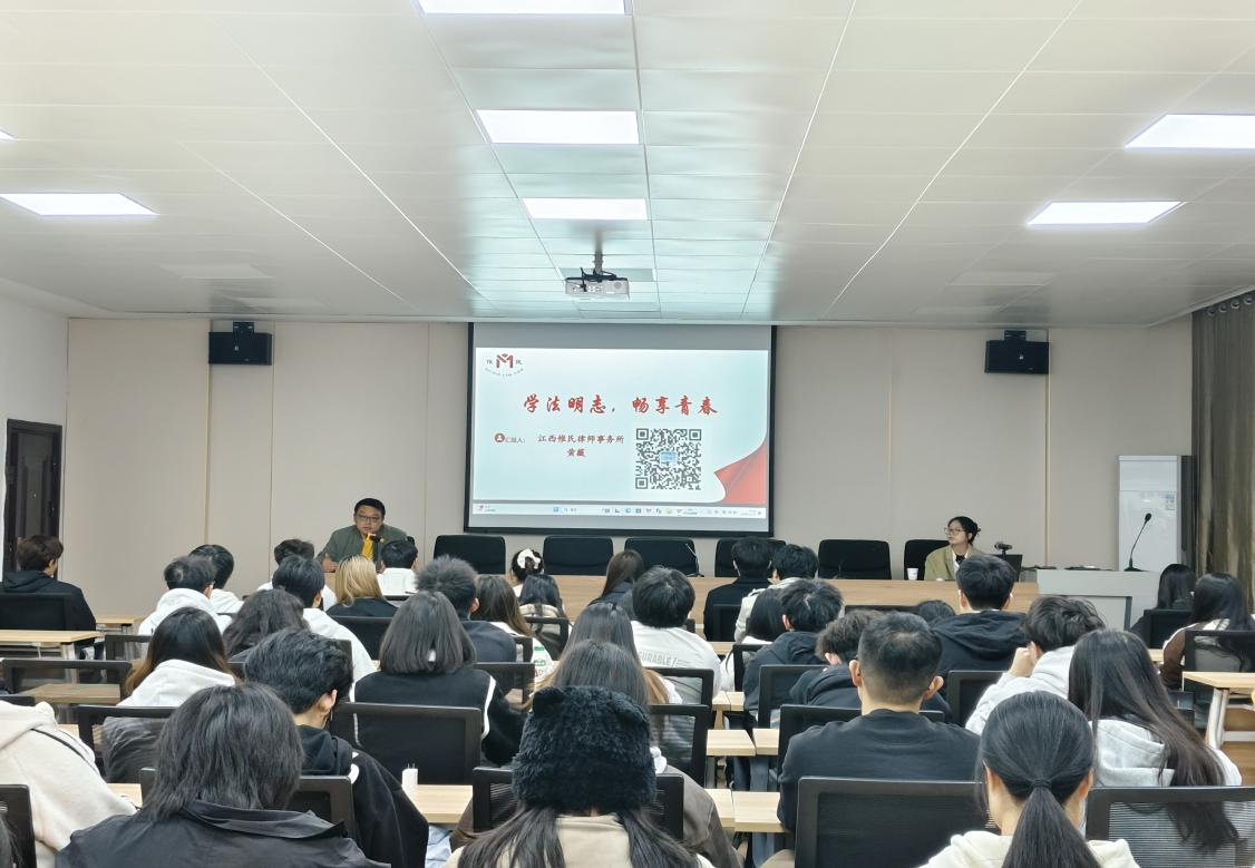 为加强大学生法治教育,提升法律素养,william威廉英国于11月21日晚上在义丰楼举办以“学法明志,畅享青春”为主题的法治教育专题讲座。本次讲座邀请到2022年毕业于williamhill英国法学院现就职于江西惟民律师事务所的黄薇律师担任主讲嘉宾。william威廉英国学生科负责人曹钧老师以及80余名学生代表参加了此次活动。
