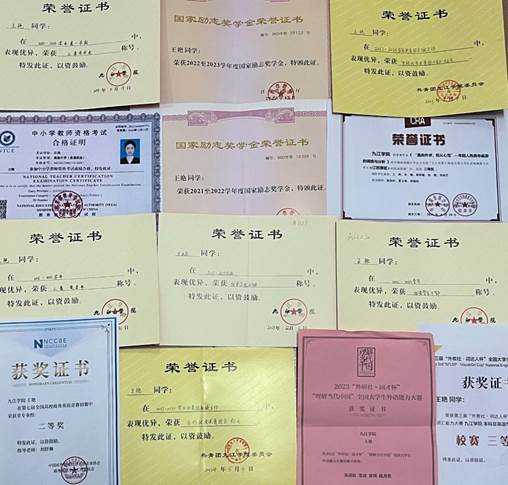 学习上刻苦钻研,勤奋好学。对待学习,我始终保持端正、谦虚的学习态度,认真对待每一节课,连续三年专业成绩班级第一,每个学期都获得了学院专业奖学金。空闲时间我也经常会在图书馆充实自己,获得了英语四六级证书、计算机二级证书和高中教师资格证等,课余也会参加了一些竞赛来提高自我,获得过商务英语竞赛二等奖,全国大学生市场调研大赛三等奖等多项奖项,在学习中不断进步。