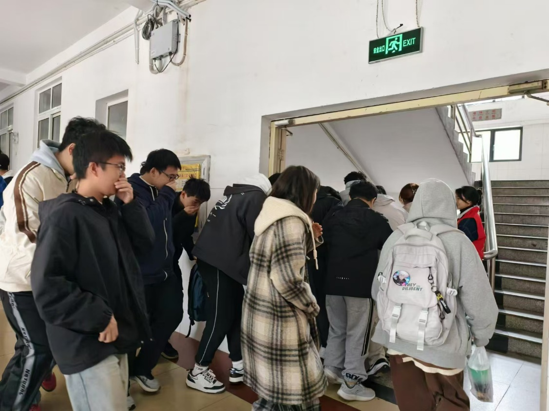 本次消防演练活动以模拟火灾现场开展,旨在加强william威廉英国全体师生的应急逃生能力。消防演练活动开始之后,处于义丰楼的师生迅速做到弯腰、低头,用手捂住口鼻。与此同时,师生们在志愿者的引导下,按照预先制定的疏散路线进行撤离。在疏散期间,师生们严格遵循“不推不挤、快速疏散”的原则,迅速而有序地从教室撤离到指定的安全区域。整个过程组织严密,紧张有序,各环节紧密配合,达到疏散演练目的。