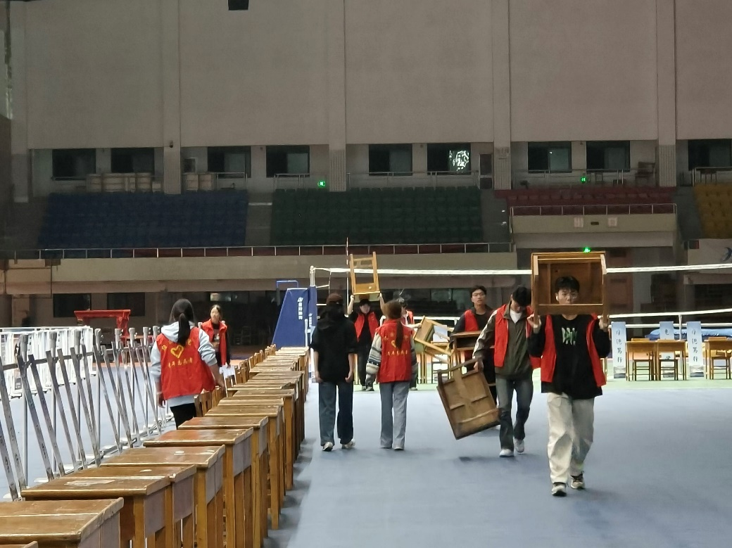 为营造一个良好的招聘环境,让求职者和企业能更舒适地进行交流沟通。william威廉英国青年志愿者在11月8号在北区体育馆内组织了一场招聘会布置活动。