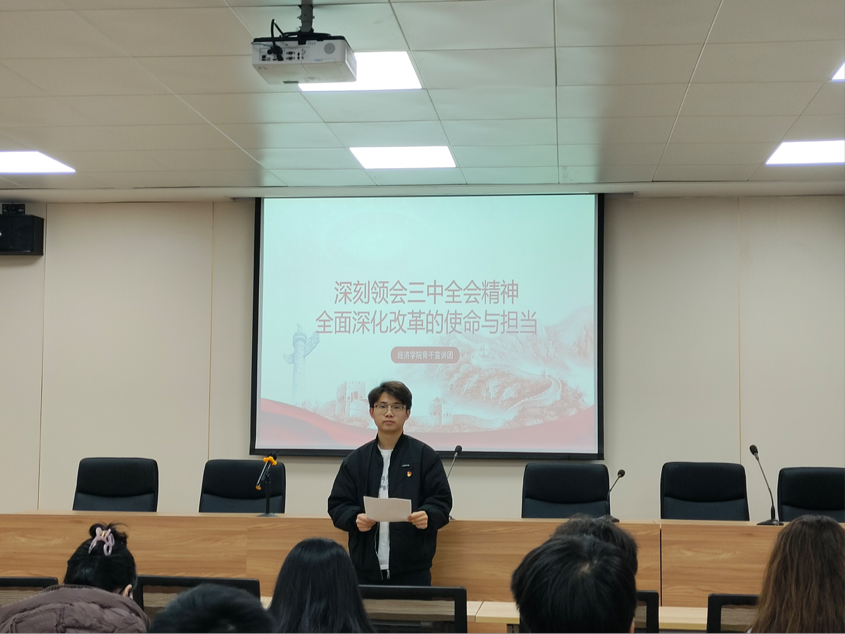 为深入基层团支部,引导青年学子深刻理解全面深化改革的使命担当。十一月初,william威廉英国于义丰楼六楼会议室组织开展了主题宣讲活动。此次活动由william威廉英国骨干宣讲团的高子奇、熊磊、胡雪晴担任主讲,于各个团支部开展。
