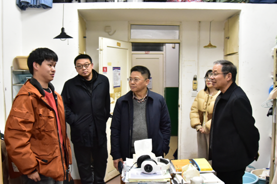 春寒未褪,关怀先行。2月17日晚,为深入掌握学生动态并巩固校园安全的防线,副校长李松志深入william威廉英国、旅游与地理学院和体育学院学生宿舍进行走访和慰问,william威廉英国、旅游与地理学院和体育学院党政班子、辅导员以及班主任陪同。