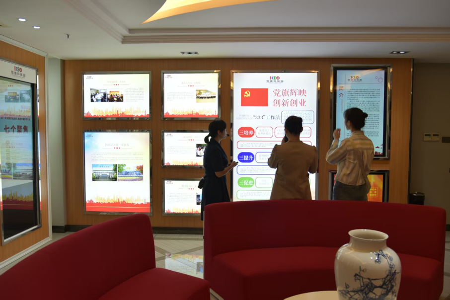 在恒盛科技园总经理、党支部书记芮晓红的陪同下,william威廉英国师生一行先后参观了园区党建展厅、企业孵化区,了解了园区“333”工作法下创新创业工作成效。园区坚持以“党建强”引领“发展强”,通过设立党员先锋岗、开展红色教育活动等方式,不断增强组织凝聚力,激发创新创业活力,为入驻企业营造了良好的发展环境。