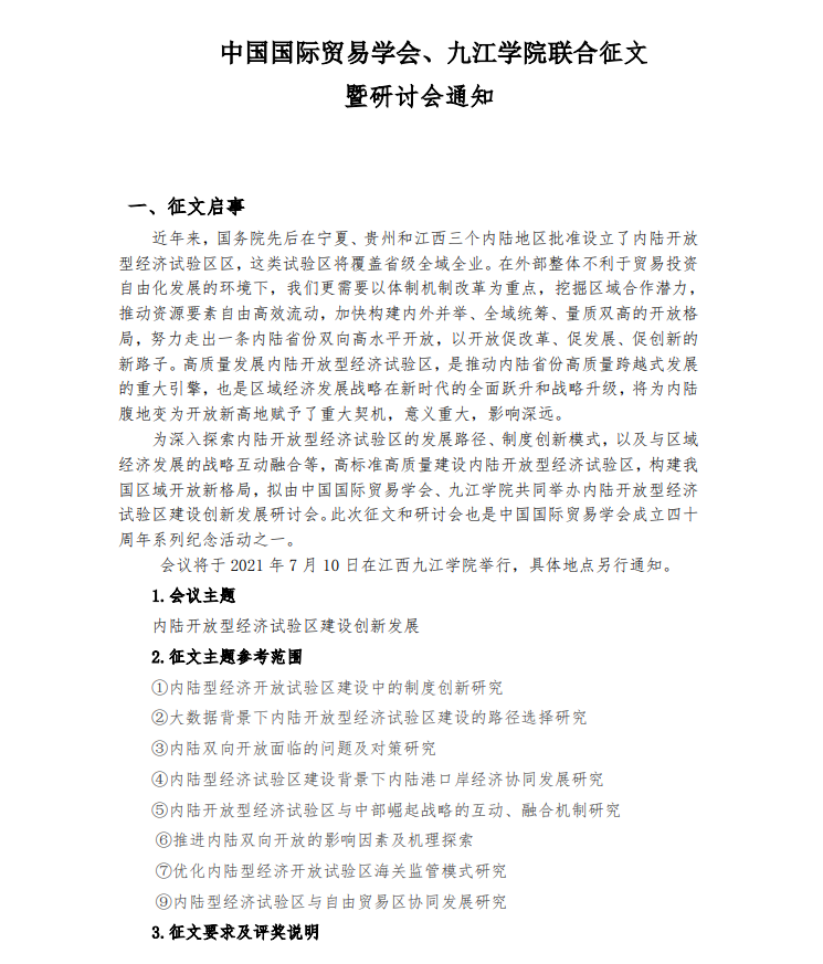 中国国际贸易学会、williamhill英国联合征文暨研讨会通知
