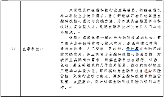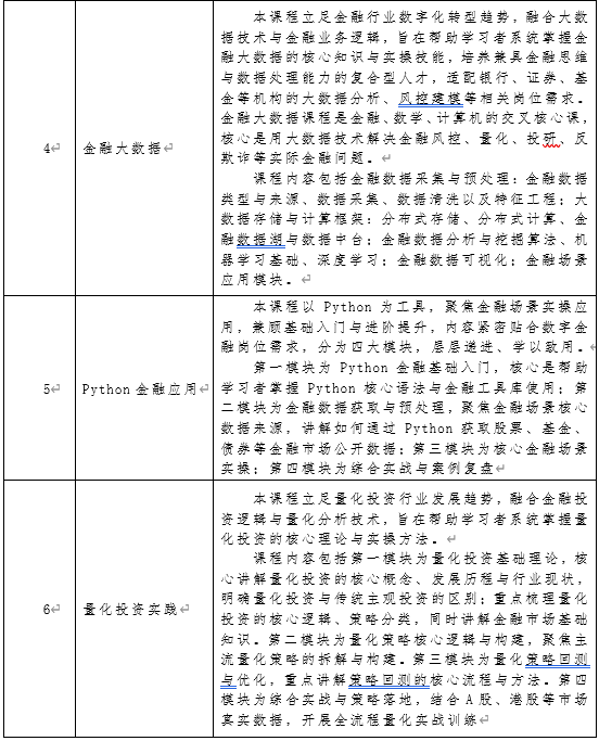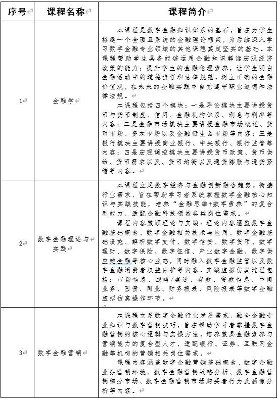 数字金融微专业是面向金融数字化、智能化发展趋势,以“金融为本体、科技为支撑、数据为驱动、应用为导向”设立的跨学科复合应用型微专业,聚焦金融与大数据、人工智能、区块链、云计算、物联网等前沿技术深度融合,打破传统金融、计算机、统计学等单一学科壁垒,培养具备现代金融素养、数字技术能力与业务实践能力应用创新复合型人才,服务数字经济时代金融行业高质量转型与可持续发展。