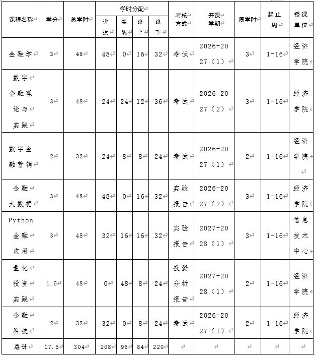具备数字化金融业务的实践操作能力;拥有较强的数字金融创新能力,能够结合金融市场需求与数字技术发展趋势,提出创新性的数字金融产品与服务设计方案;能够运用所学的金融知识与数字技术,分析和解决数字金融领域中的复杂问题;具备良好的团队协作与沟通交流能力;具有较强的自我学习与持续发展能力。