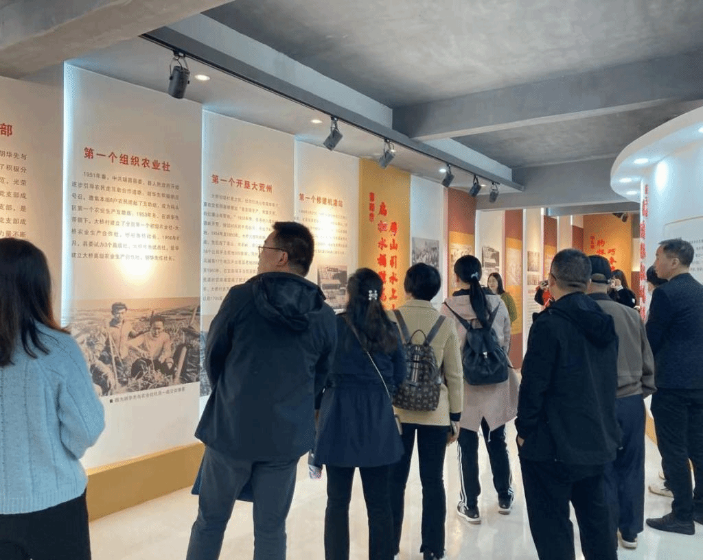 党员们通过学习展馆内”铁肩膀”的重要历史事迹、馆内珍贵的历史陈列物,观看“铁肩膀”故事影视片段等,深入了解了全国劳模胡华先不畏艰辛、身体力行,带领着大桥人开山垦土、改良耕地、研究栽培技术,凭借着“两个肩膀一双手,一支扁担两个筐”,让贫瘠的大桥村旧貌换新颜,铸就了享誉全国的“铁肩膀精神”。党员干部们受到了一次深刻的党性教育和心灵洗礼。