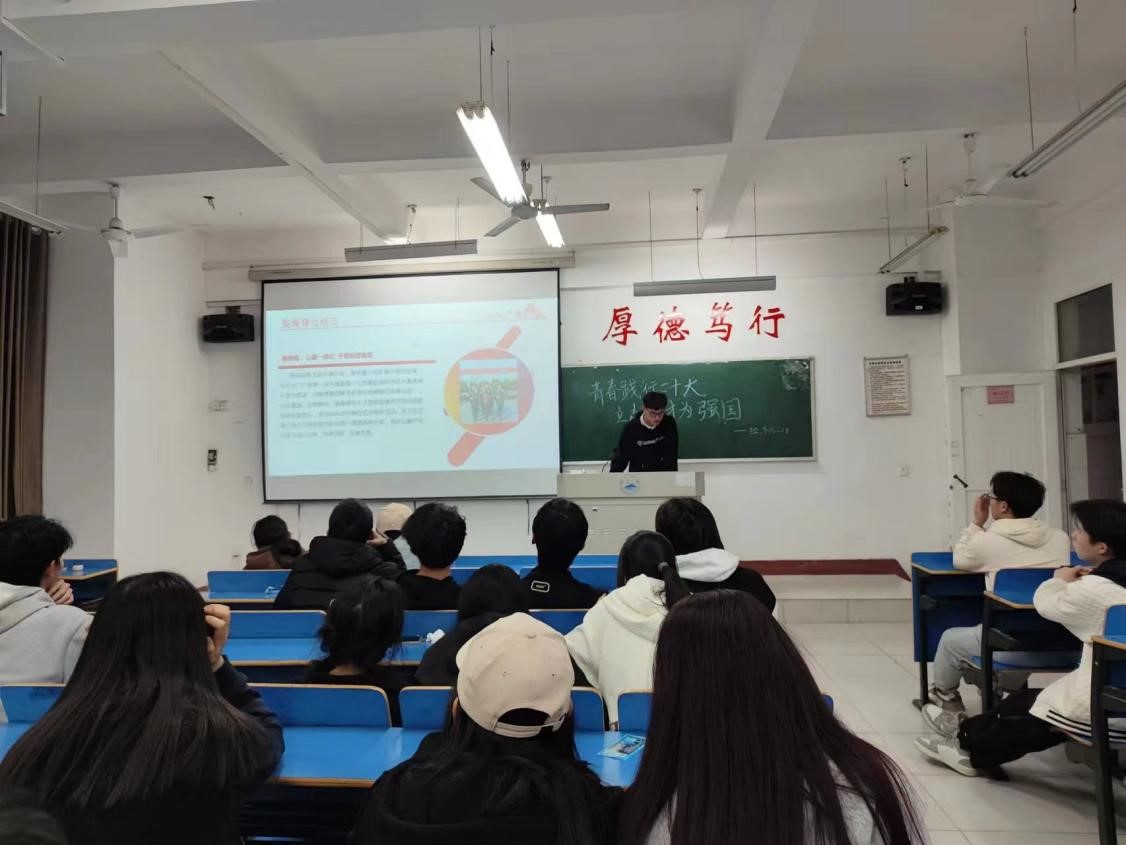活动中,主讲人带领同学们学习了党的二十大精神,并围绕同学们提出的成长困惑以及关心的就业、升学等问题进行有针对性的引导,激励他们厚植家国情怀,涵养进取品格。同时,结合了几个优秀青年的相关事例,点明了青年学生对国家发展对重要作用,并且对当代青年如何将“小我”成长融入“大我”奋斗话题进行研讨。最后,呼吁同学们要善于向先进典型学习,在一点一滴中完善自己,从小事小节上修炼自己,以自己的实际行动学习先进、保持先进、赶超先进,要积极弘扬奉献精神,凝聚起奋斗新时代的强大力量。