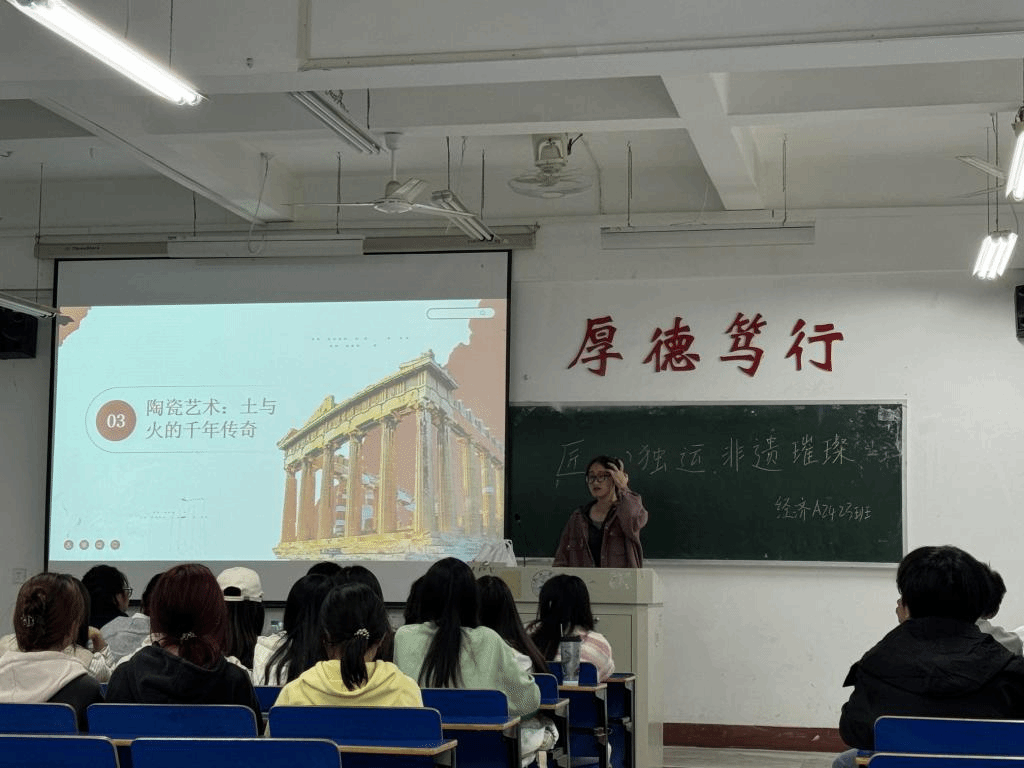 在互动讨论环节中,同学们积极提出了自身对非遗文化的认识与了解,并且热烈讨论了非遗文化在新的时代背景下如何焕发新活力的问题,例如建议政府应发挥重要作用,出台相应政策,将非遗保护工作纳入发展规划中,还有建议非遗文化传承方式应与时俱进,借助现代科技的力量,使非遗更加贴近现代生活。