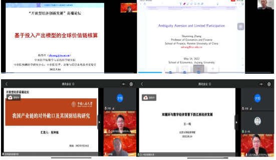 针对当前我国处于全球产业链低端,出口加工贸易比重较大,加工贸易出口品生产需要消耗大量进口品,对于中国等贸易结构比较特殊的国家来说,这种重复计算更加严重,杨翠红教授提出了基于投入产出模型的全球价值链核算方法;张顺明教授以RsikAmbiguityUncertainty等概念作为切入点引出了当前金融学领域研究的前沿热点问题,详细解读了金融学中重要概念的定义、内涵及其发展,并对金融学中风险和暧昧做了细致的分析,针对繁杂的数学知识做了精简的描述;王一鸣教授针对当前的双循环和数字经济背景,结合江西发展的实际情况,提出了推进大数据应用、助江西产业提质,促进服务数字化、拓展消费新场景,加快贸易数字化、推动外贸新发展,借助数字化传播、提升品牌影响力等一系列举措;祝坤福教授对风险敞口概念进行了介绍,提出了基于全球化生产特征的产业链外部敞口测算框架,并测算了我国产业链的敞口规模和国别结构,为我国产业链风险研究提供了基础数据指标的支持。